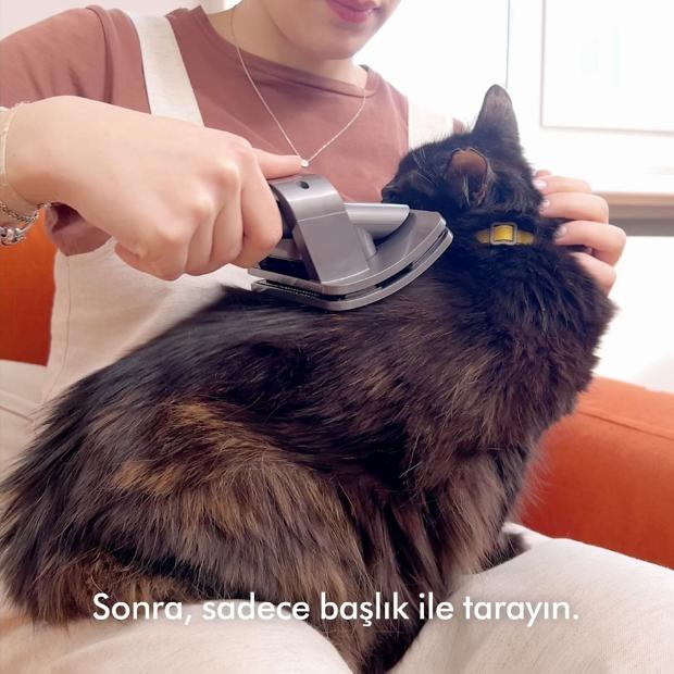 Köpeğinizin dökülen tüylerini, kepeklerini ve mikroskobik deri pullarını anında yok etmek için tasarlanan Evcil hayvan bakım seti, Dyson'ın kablosuz süpürge teknolojileriyle uyumlu olarak çalışıyor. Makinenin ana gövdesine veya bir uzatma hortumu aracılığıyla takılan, 35° açılı, 364 kıla sahip olan başlık, siz evcil hayvanınızı fırçalarken esneyerek köpeğinizin tüylerini almak için hızlı ve rahat bir şekilde köpeğinizin kürküne ulaşıyor.